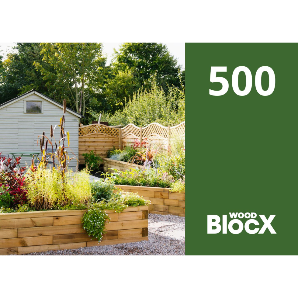 De waarde van onze cadeaubonnen kan aan alles op onze website worden besteed. Dit omvat standaard WoodBlocX-kits, verhoogde bakken, verhoogde vijvers, keerwanden en zelfs onze ontwerpservice.