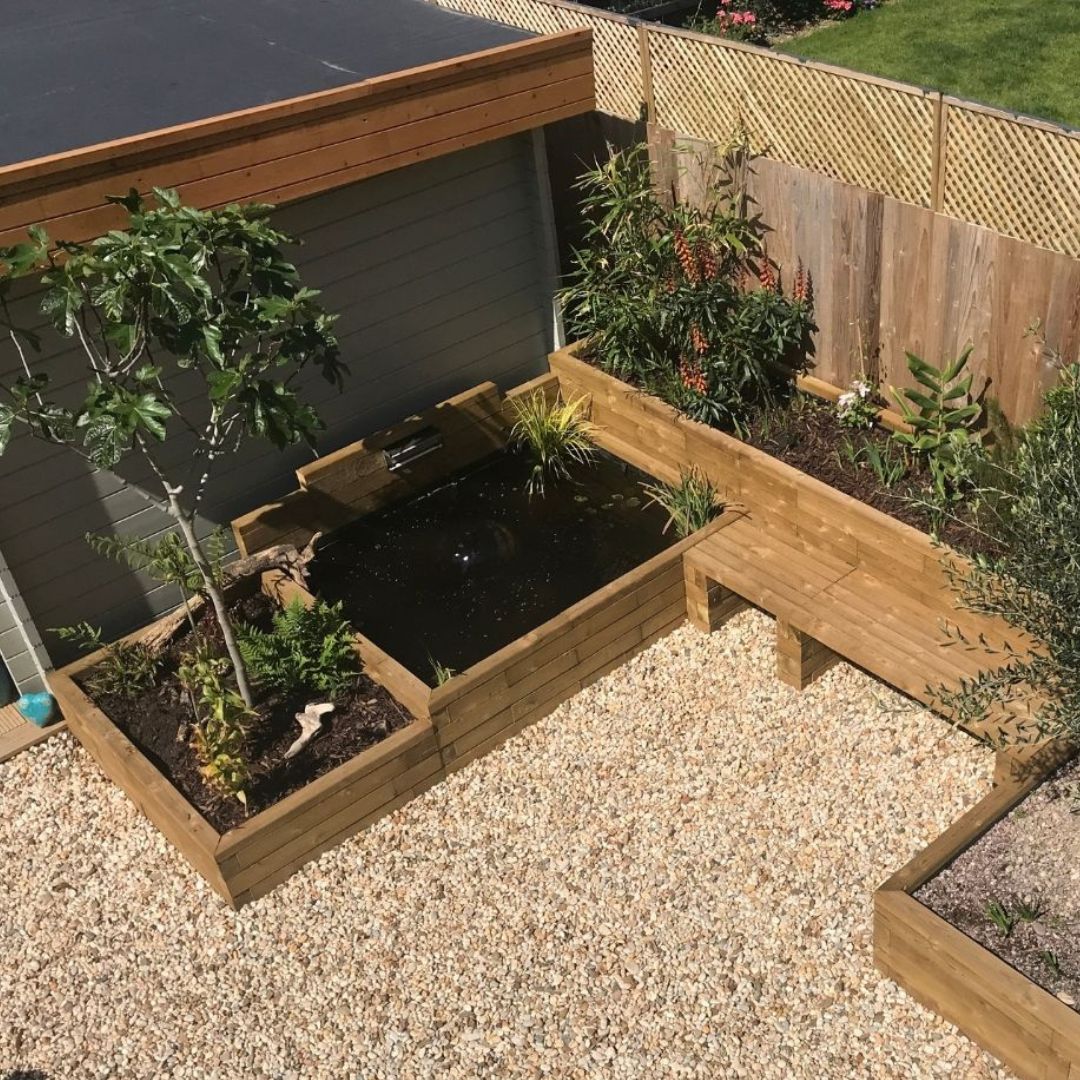 Integreer eenvoudig een verhoogde vijverbak in je border. Voor compacte tuinen werken kleinere vijvers tot ca. 1,875 m breed en 0,65 m hoog uitstekend; grotere afmetingen zijn mogelijk met ons dubbelwandige ontwerp.