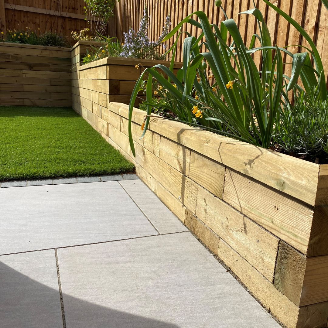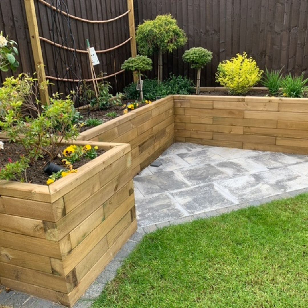 Vervang oude randen van bielzen, baksteen of steen – of leg een nieuwe tuin aan – met duurzame WoodBlocX. Creëer doorlopende lijnen en verschillende niveaus voor structuur. Bekijk meer inspiratie op de tuinen van klanten pagina.
