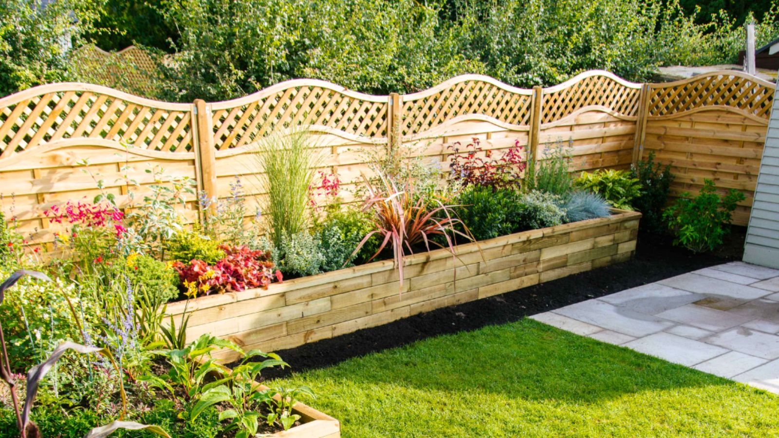 Heuphoge borders maken planten, wieden en water geven veel eenvoudiger. Volg de vorm van de tuin (zoals in dit voorbeeld) of creëer zones die het ontwerp versterken.
