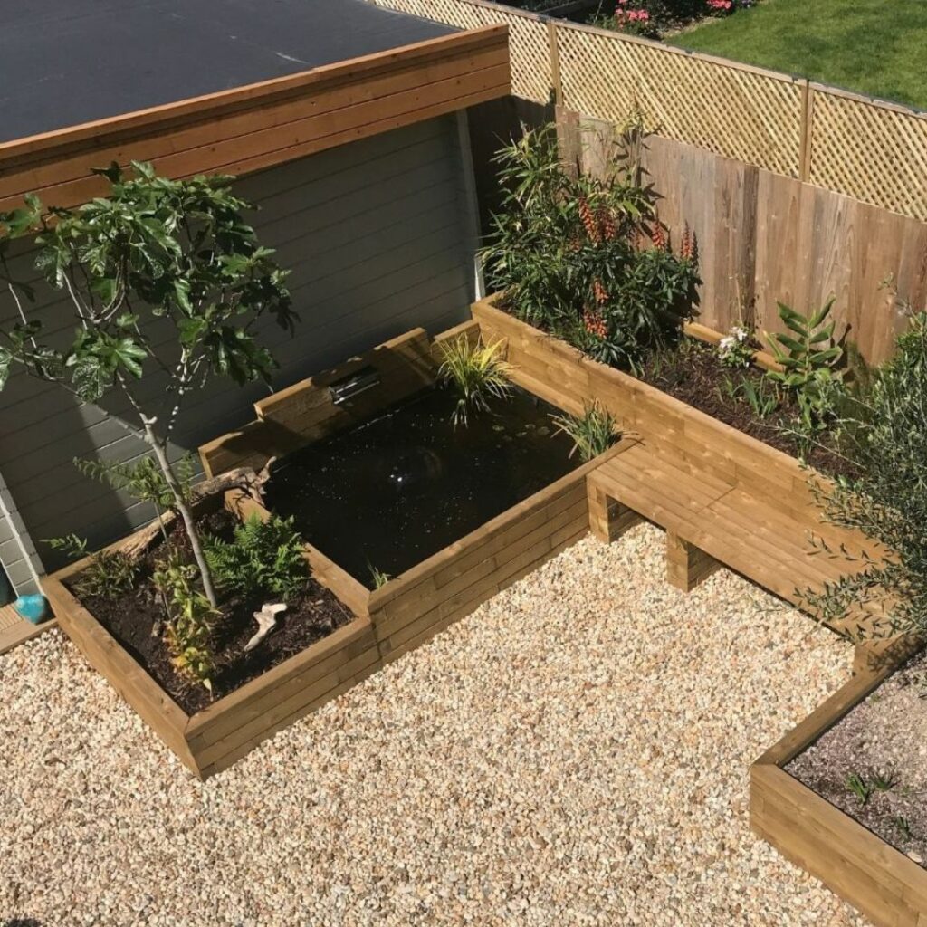 Een vijver zonder uitgraven brengt water, leven en een wow-factor in je tuin — zonder zware graafwerken. Met de modulaire WoodBlocX-wanden als stevige, aantrekkelijke omlijsting bouw je bovenop een vaste, egale ondergrond. Zo bescherm je kabels/leidingen en boomwortels en blijft het werk proper. Ideaal voor stadstuinen, huurwoningen en plaatsen met moeilijke toegang.