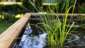 • Bij hitte periodes schaduw creëren (drijfplanten of een lichte pergola).