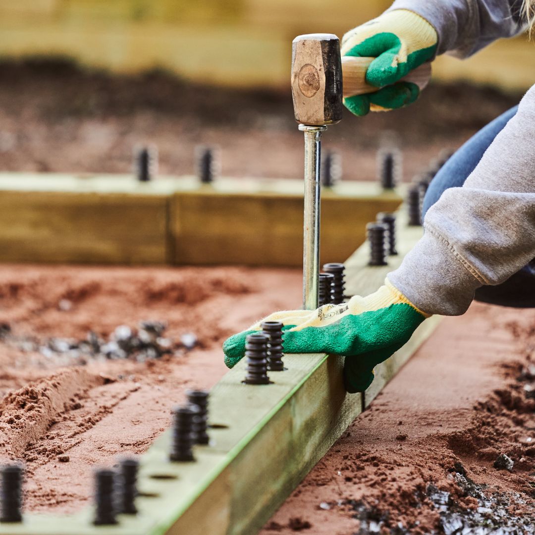 Dezelfde regels gelden bij het bouwen van elke WoodBlocX-structuur; begin met een vlakke ondergrond (dit is erg belangrijk!). Dit kan wat graafwerk vergen om ervoor te zorgen dat je jouw eerste BlocX-laag op een egaal en vlak oppervlak legt - gebruik een waterpas en wat samengeperst bouwzand of klein grind om het meest nauwkeurige startpunt te krijgen. Als jouw structuur steunbalken bevat en je een muur bouwt tegen een verhoogd deel van de tuin, moet je de ruimte voor deze steunbalken uitgraven (bekijk een demovideo).