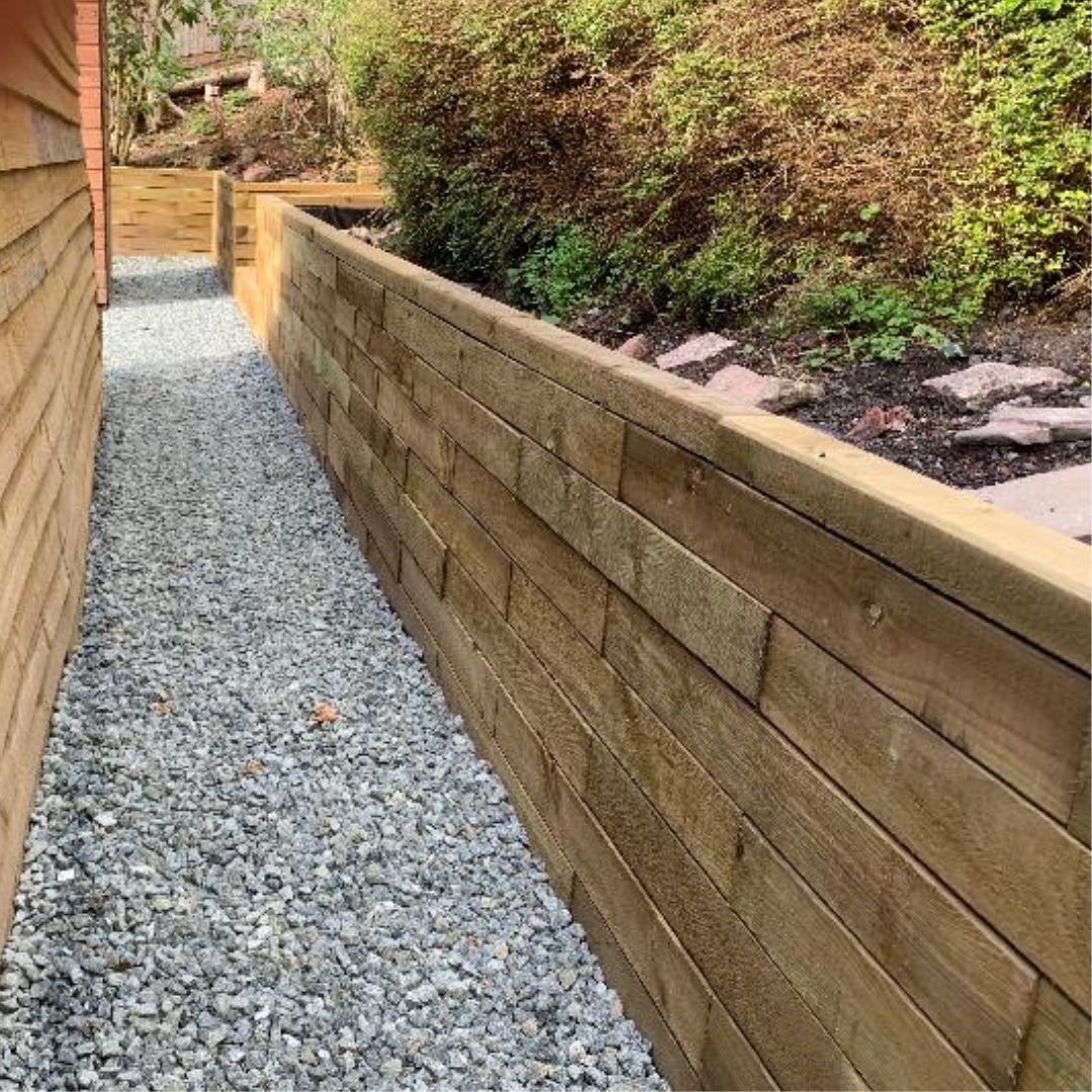 Er zijn geen noemenswaardige funderingen of grondwerk nodig om een WoodBlocX-keermuur te bouwen en onze muren zijn voorzien van steunbalken die de structuur verankeren in het deel van de tuin dat je wilt tegenhouden.