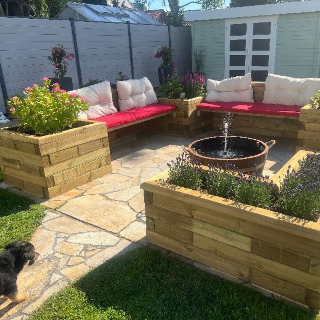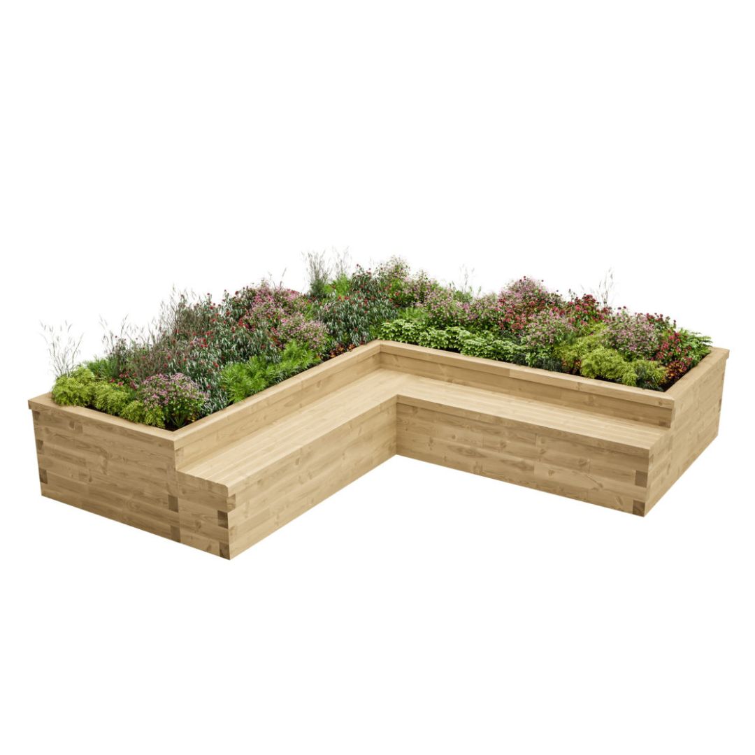 De grote L-vormige plantenbak met zitgelegenheid is zeer populair bij onze klanten en biedt veel zitplaatsen en volop ruimte om te planten. Het past goed in een hoek of kan worden gebruikt om een grotere ruimte op te delen.