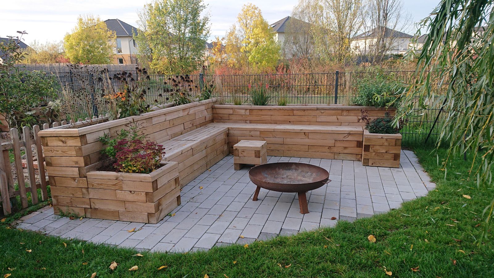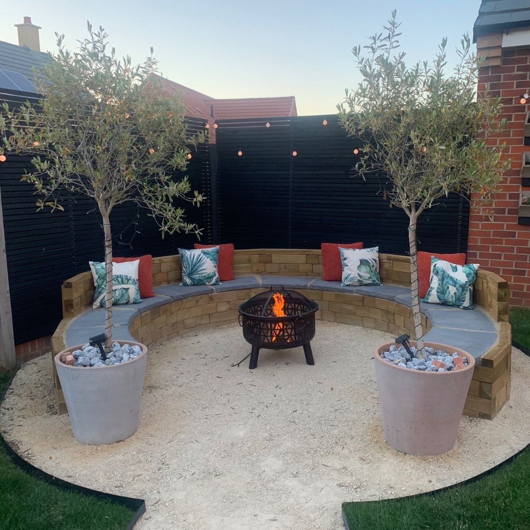 Lastige ruimtes zijn voor WoodBlocX geen probleem! We kunnen je helpen om een onhandige ruimte om te toveren in iets functioneels en moois. Deze vuurkorfhoek in deze nieuwbouwtuin is een goed voorbeeld. Nieuwbouwwoningen kunnen vaak extra ruimtes in de tuin hebben als uitloper van de hoofdtuin en de eigenaren extra ruimte bieden. In dit geval wilde de klant een vuurplaats creëren als onderdeel van een groter tuinontwerp. We hebben banken ontworpen die de contouren van het hek volgen om de perfecte vuurplaats te creëren.