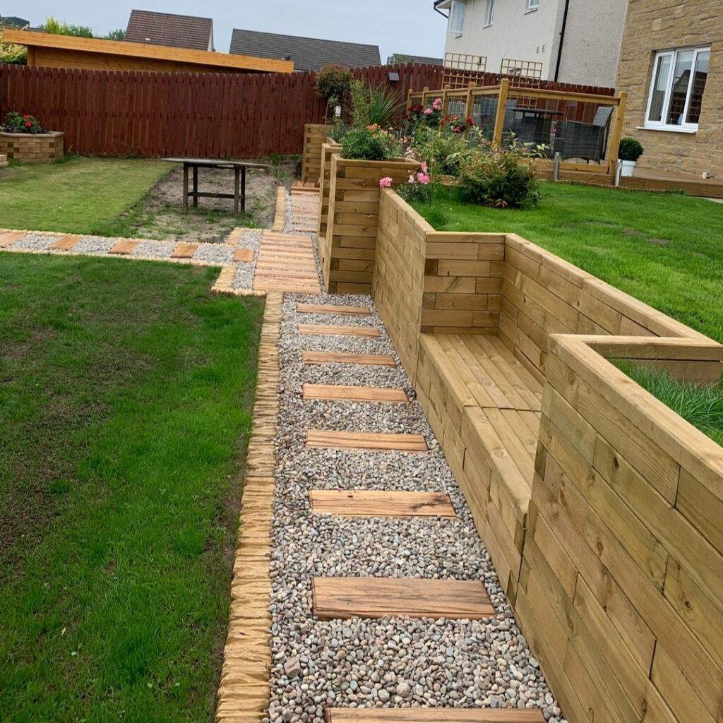 Nieuwe huiseigenaren nemen regelmatig contact met ons op om hen te helpen hun nieuw opgeleverde tuin, die meestal bestaat uit straatstenen en een gazon, om te toveren tot een mooie, onderhoudsarme, functionele ruimte met verhoogde bakken, tuinmeubilair, keermuren en trappen, waar ze het hele jaar door van kunnen genieten.