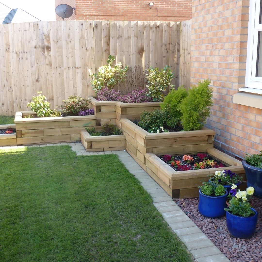Met een combinatie van verhoogde bakken, keermuren en trappen is het eenvoudig om een onderhoudsarme ruimte te creëren.