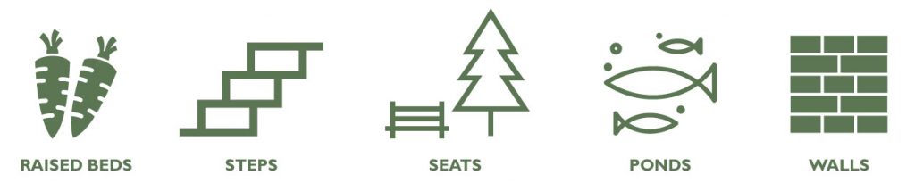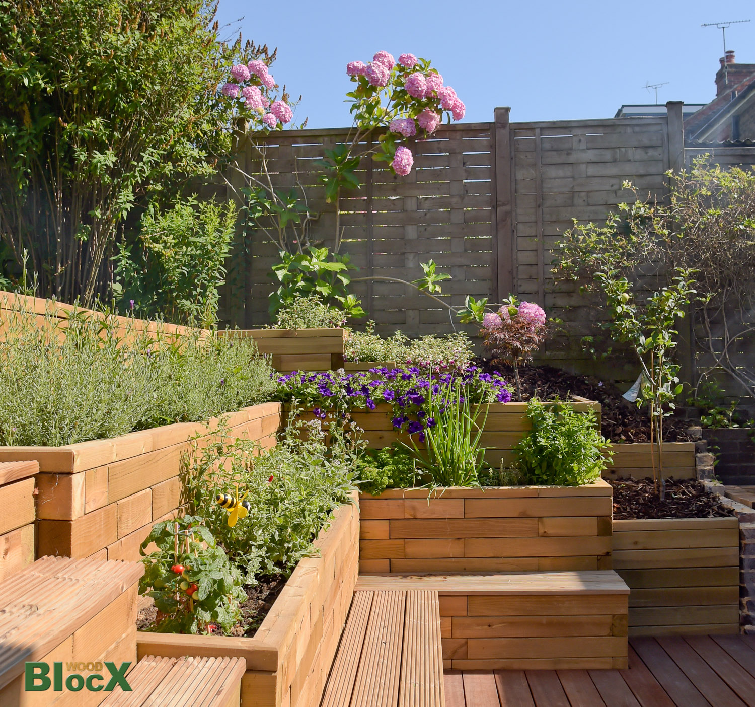 It’s easy to bring your garden to life with WoodBlocX. A little landscaping and the slopes and hills can be turned into terraces, borders and flat lawns. With additional built in features such as steps, benches and pillars. It can be much easier to build with compared with sleepers.
