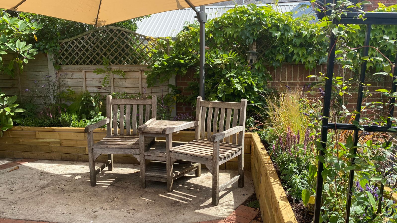"We zijn heel blij met het eindresultaat; onze dochter Becky heeft geweldig werk geleverd met het algehele ontwerp en de selectie van planten. Het is nu een waar genoegen om in onze gemakkelijk te onderhouden tuin te zitten en te relaxen en soms vragen we ons af waarom we niet al enkele jaren geleden voor verhoogde bakken en WoodBlocX hadden gekozen."
