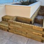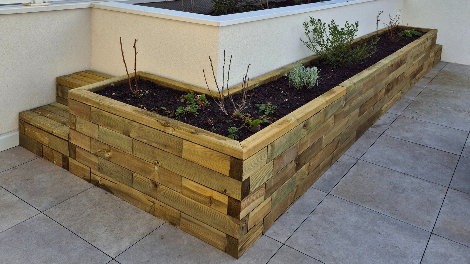 Onze L-vormige plantenbak met op maat gemaakte treden aan weerszijden was de perfecte oplossing om nog steeds toegang te hebben tot de oorspronkelijke verhoogde bak.