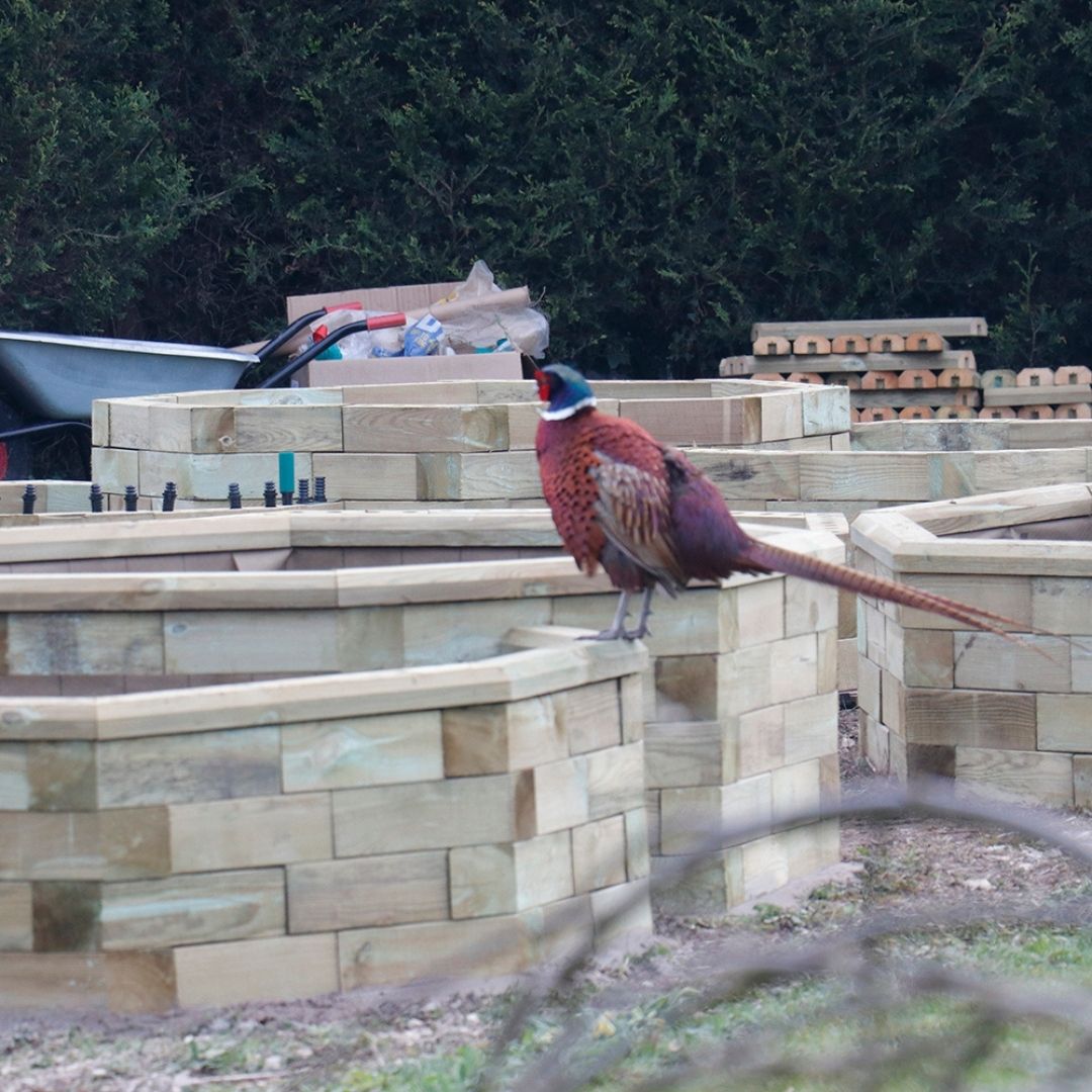 Vanwege de omvang van het project besteedde Helen het bouwwerk uit, maar WoodBlocX is eenvoudig te bouwen als je de tijd hebt om dit zelf te doen. Het kostte drie mensen 11 dagen om het tuinproject te voltooien. De werkzaamheden omvatten: het bouwen van het paviljoen, het plaatsen van een leien dak om het waterdicht te maken, het aanbrengen van dakgoten en aansluiten op de regentonnen, het bouwen van de verhoogde bakken, de bakken voeren en vullen met aarde, het plaatsen van anti-onkruidworteldoek rond de verhoogde bakken en het paviljoen en de bodem bedekken met boomschors.