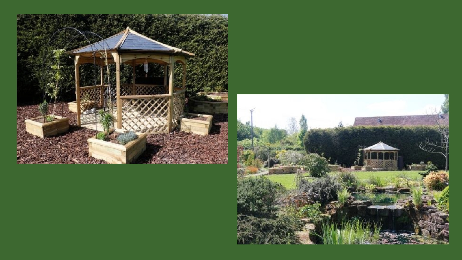 Helen zei: “Het sprak me aan dat er verschillende vormen verhoogde bakken beschikbaar zijn. Daardoor kon ik de verhoogde bakken in dezelfde vorm kiezen als het tuinpaviljoen. In het begin had ik nog niet besloten of ik voor een ronde of een achthoekige vorm zou kiezen.
