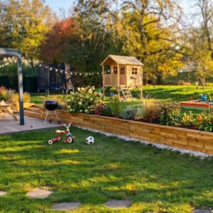 De ruimte in Jeroen’s tuin was lang en smal met een pad dat in de lengterichting van de tuin liep. Vanwege de afmetingen van de ruimte moest het ontwerp van de plantenbak smal zijn aan de ene kant en breder aan de andere kant. De grond was ongebruikt en onaantrekkelijk. Dat is natuurlijk een leeg canvas voor een WoodBlocX-bouwproject!