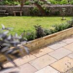 In Jill’s tuin stonden al zeer volwassen, gevestigde planten op het terras en in de borders. Het prachtige Indiase zandstenen terras dat vlakbij de tuin was aangelegd bood de familie volop extra gebruiksruimte, maar de overgang naar het grote gazon daarvoor voelde te open. Jill had een idee om het terras af te bakenen met een lange plantenbak zodat de ruimte wat meer geborgen zou aanvoelen en tevens de afscheiding naar de rest van de tuin vriendelijker zou maken met planten en natuurlijke houttinten.