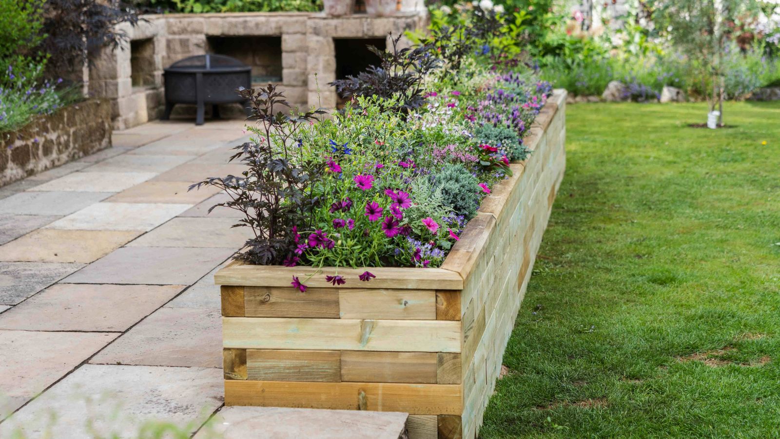 De uiteindelijke houten plantenbak van Jill ziet er echt prachtig uit naast het terras! Hij is in slechts een dag gebouwd en in een ochtend met planten gevuld en zorgt voor een subtiele scheiding tussen het terras en de rest van de tuin. De bak bakent het terras af en vormt een nieuw middelpunt wanneer je op het terras zit.
