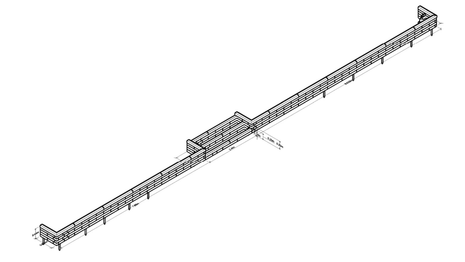 Vanwege de lengte en hoogte van Thibauts keerwand waren in het ontwerp interne steunbalken opgenomen voor extra ondersteuning van de structuur. Nadat een voering is aangebracht en de ruimte met aarde is gevuld en beplant kun je niets meer zien van de steunbalken.