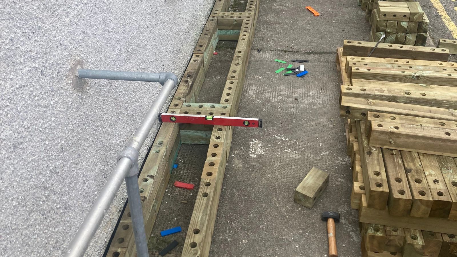 Aangezien deze bestelling lokaal geleverd moest worden (niet ver van onze zagerij in Dingwall, Schotse Hooglanden), werden de WoodBlocX-onderdelen voor het ontwerp binnen enkele dagen verzameld, verzonden en op een pallet afgeleverd! Voorbereidend grondwerk was niet nodig omdat de constructie op beton moest worden gebouwd.