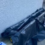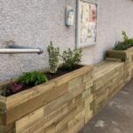 Na het meten van de ruimte aan de buitenkant van het gebouw, stuurde het studioteam een verzoek met tekeningen en enkele foto’s naar onze gratis ontwerpservice om een smalle verhoogde bak met geïntegreerd zitje te maken in onze moderne afdekkingsstijl. Om de ingang van de studio toegankelijk te houden mocht het ontwerp maximaal 37,5 cm diep zijn met een totale lengte van 6,75 m om zoveel mogelijk van het gebouw te bedekken.