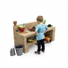 Laat de fantasie van je kind buiten de vrije loop met deze unieke houten modderkeuken. Van het mixen van tuiningrediënten tot het maken van de perfecte moddertaart, ze zullen dol zijn op deze keukenkit!