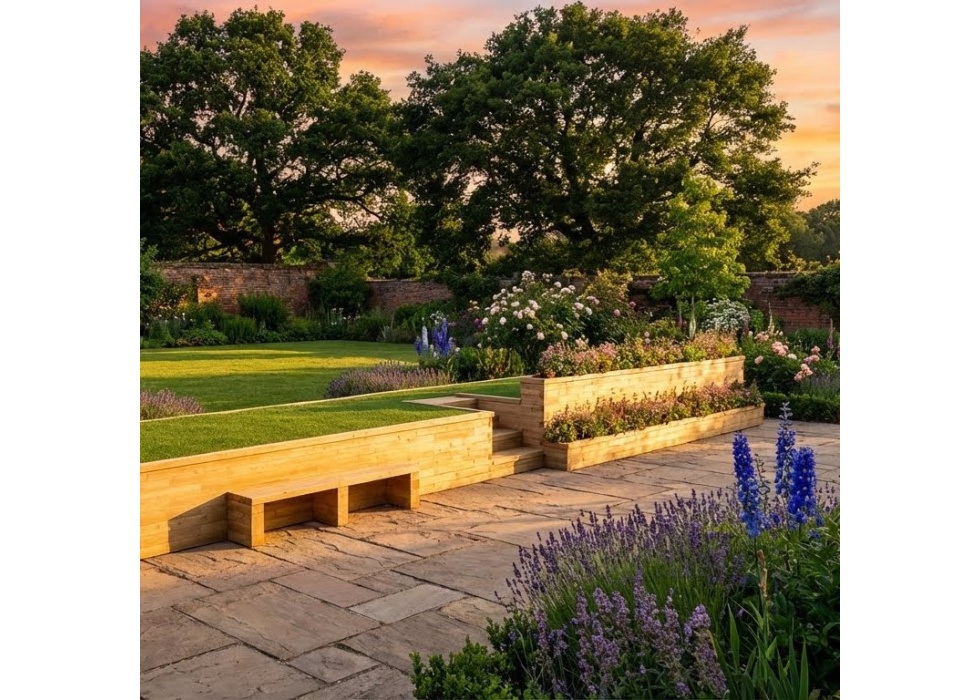 Deze lange keer muur was deel van een grootscheepse tuinherziening met als doel een glooiende tuin in een opgedeelde tuin met twee niveaus te transformeren. Aan de rechterkant is extra ruimte voorzien voor randbeplanting van planten, bloemen of kruiden. De linkerkant biedt zitgelegenheid met geïntegreerde zitplaatsen. Deze kit werd ontworpen voor een klant. Als u een op maat gemaakt ontwerp nodig heeft, dan gewoon contact met ons op. Het WoodBlocX-team helpt u graag verder met het maken van een ontwerp voor een keermuur voor uw tuin. Neem contact met ons op via onze gratis Design Service .