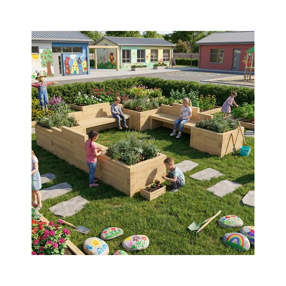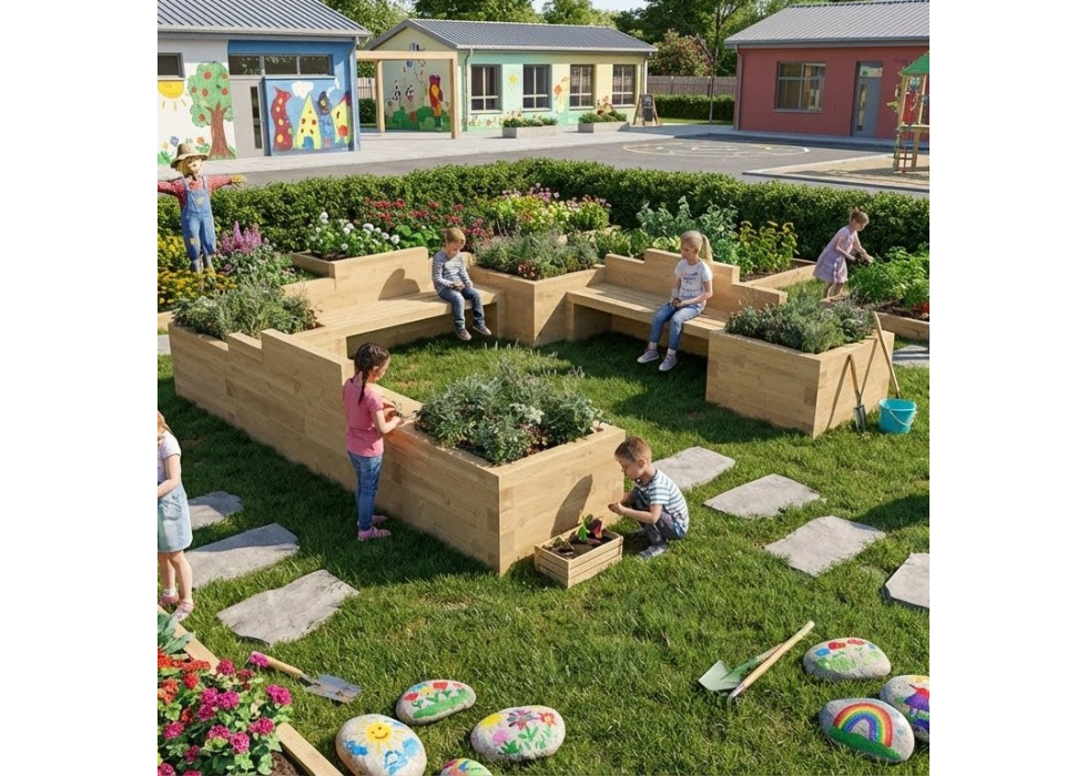Kindertuinbank met Moestuinbakken - U-vorm / 300 x 300 x 65 cm