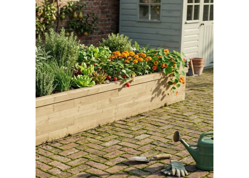 Deze verhoogde kruidenbak biedt veel ruimte voor je eigen kruidentuin. Grote verhoogde kruidenbakken bouwen is zoveel gemakkelijker met WoodBlocX dan met bijvoorbeeld spoorbielzen. WoodBlocX is veel minder zwaar, bevat geen schadelijke stoffen en biedt een oplossing die er natuurlijk mooi uitziet. WoodBlocX-constructie buigen ook niet zoals planken en spoorbielzen. Niet helemaal wat je zocht? We bieden een gratis ontwerpservice op maat voor al onze kits, ongeacht hoe klein of groot het project is. Je kan ook onze moestuinbakkencalculator gebruiken om verschillende groottes en prijzen te vergelijken.