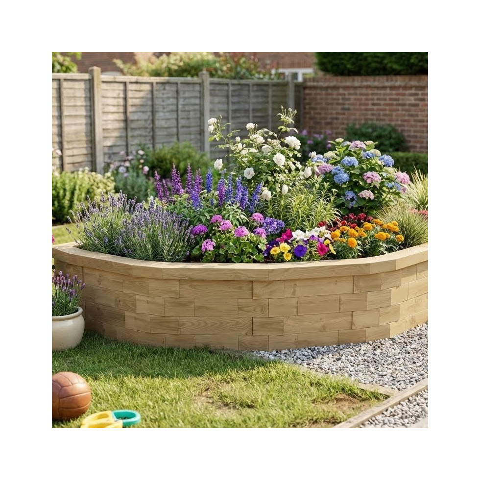 Deze XXL Moestuinbak in de vorm van een halve cirkel is de ideale manier om wat meer kleur en vorm te geven aan de typische rechtlijnige tuin. Creëer een uniek en indrukwekkend middelpunt met dit ontwerp! Niet helemaal wat je zocht? We bieden een gratis ontwerpservice op maat voor al onze kits, ongeacht hoe klein of groot het project is.