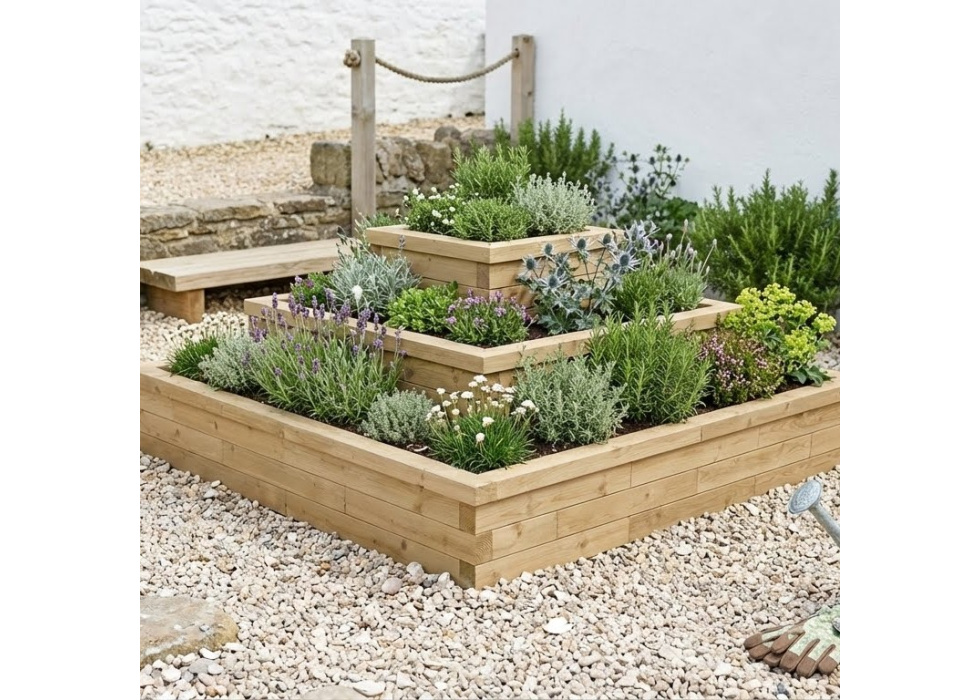 De plantenbak is het ideale middelpunt van een voor- of achtertuin. Dankzij de vierkante vorm van 2,25 x 2,25 m kun je in het midden van deze piramidevormige plantenbak ook een klein boompje planten, omringd door aardbeien of kruiden.