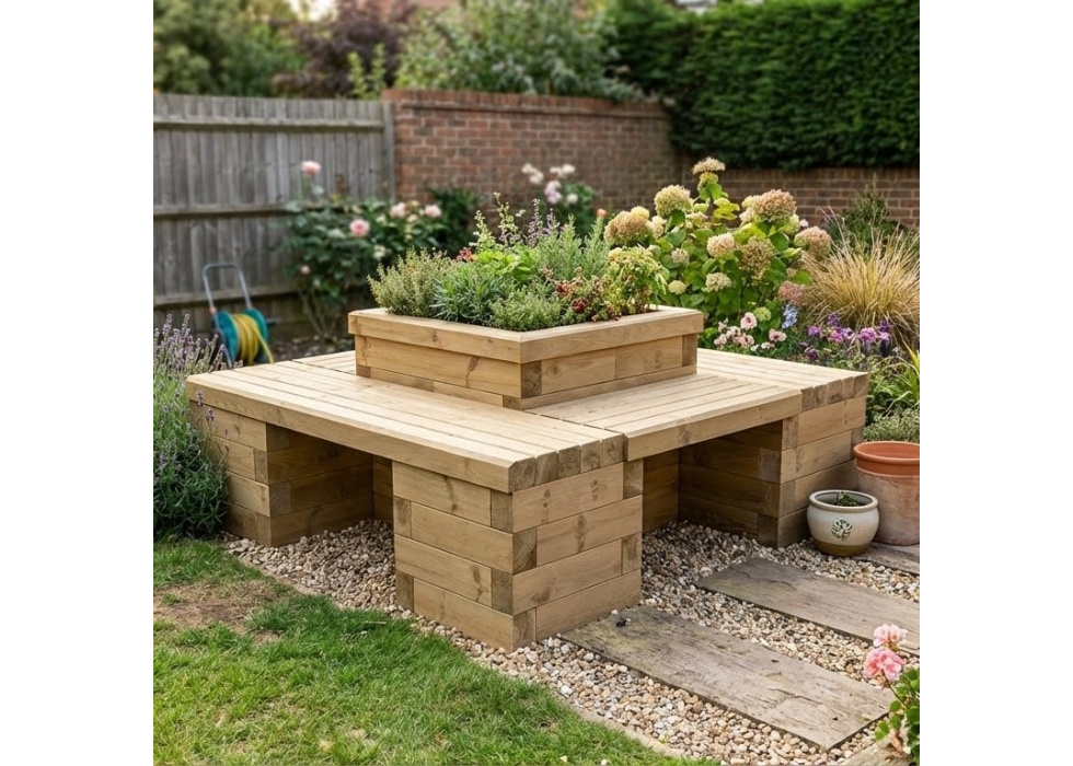 Four Sided Planter Seat with Central Bed / 1.5 x 1.5 x 0.45m