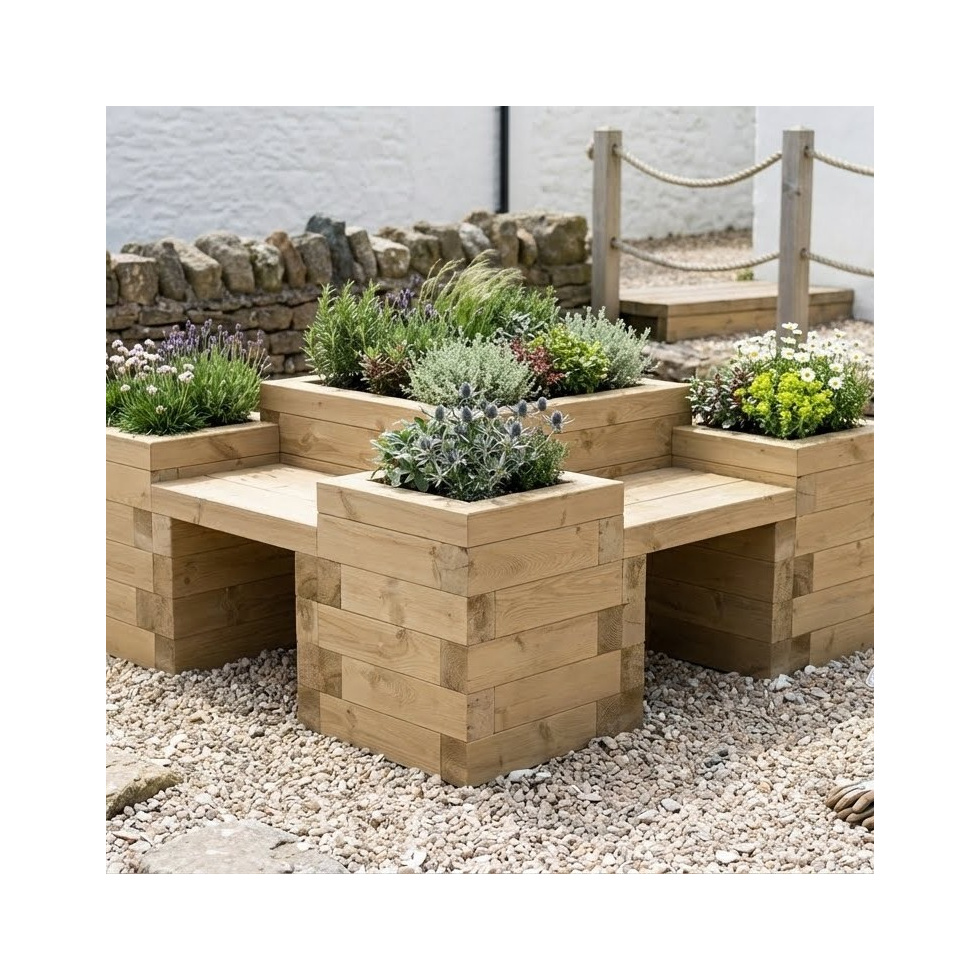Met deze wondermooie tuinbank met multi-level plantenbakken kan je alle hoeken van je tuin op een ontspannen manier bewonderen. De fantastische combinatie van bank en plantenbak doet denken aan de afwisselende banken en bomen langs Spaanse Ramblas en Franse promenades. Deze kit kan plaatsgeven aan een kleine boom in het midden en geurige kruiden en bloemen aan weerszijden. Ben je dol op dit ontwerp, maar heb je meer of minder ruimte nodig? We bieden een gratis ontwerpservice op maat aan voor al onze kits. We werken graag met u samen om uw droomontwerp te realiseren. Op zoek naar meer variaties? Bekijk ons volledige assortiment om uw volgende tuinproject te vinden.