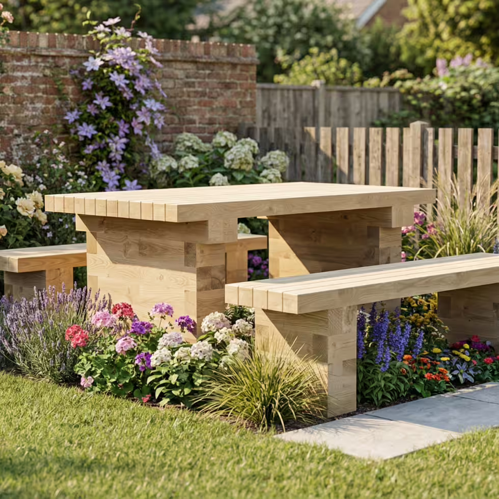 Tuintafel en Bank Set / 1.5 x 1.65 x 0.75 m