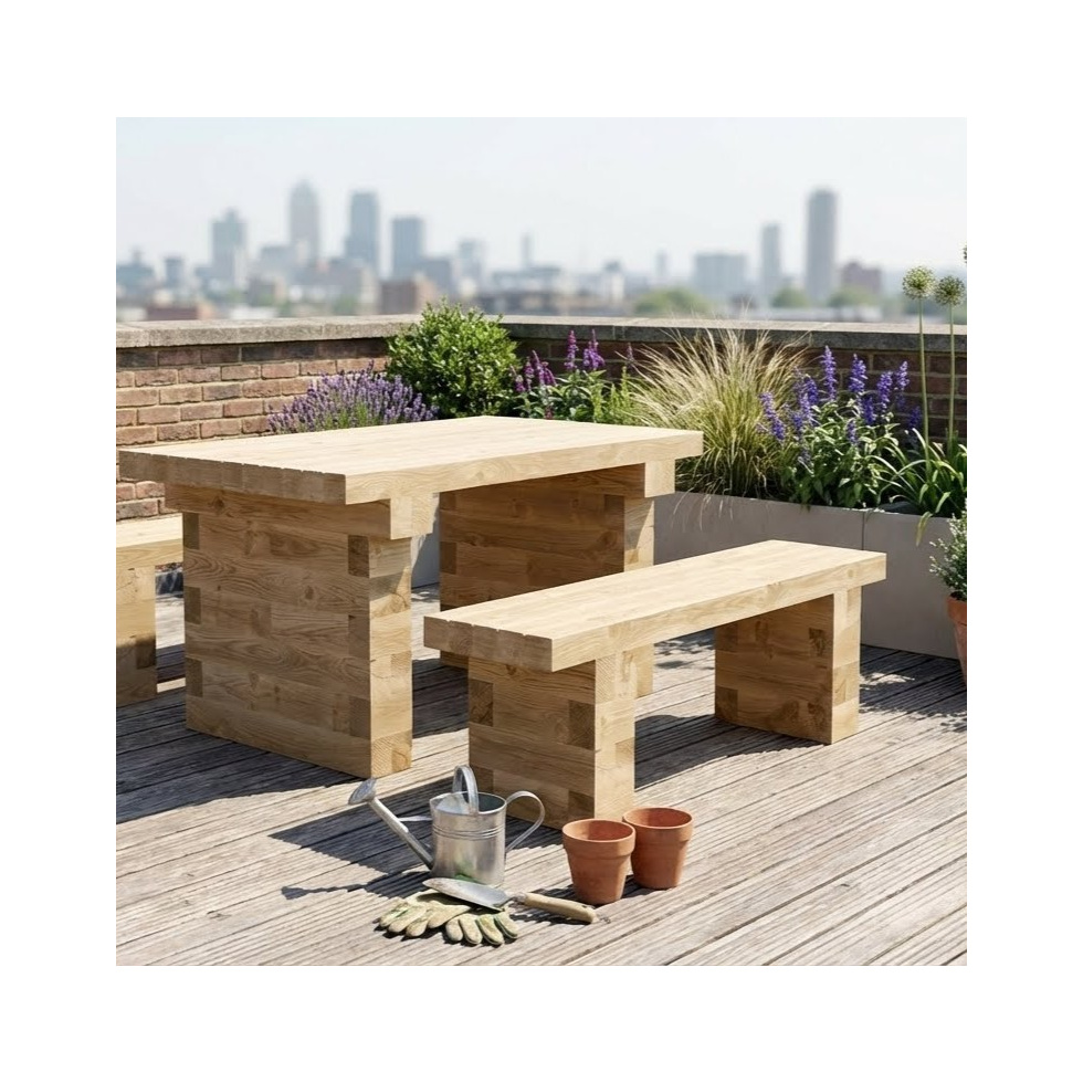 Deze tuinset is perfect voor elke patio of tuin die je wilt omtoveren tot een eethoek in de buitenlucht. Het biedt een robuuste en stevige uitstraling met behoud van de balans van een moderne en rustieke esthetiek.